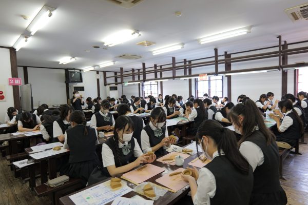 有田ポーセリンパークでは有田焼の手びねり体験をしました。あらかじめ茶碗か湯呑の形を選んで、生徒たちは作り方の説明を受けながらそれぞれが熱心に作っていました。体験を終えた後は、同じ敷地内にあるバロック庭園を散策しました。