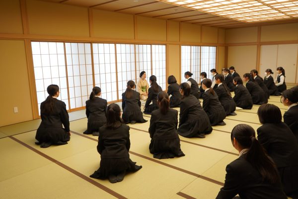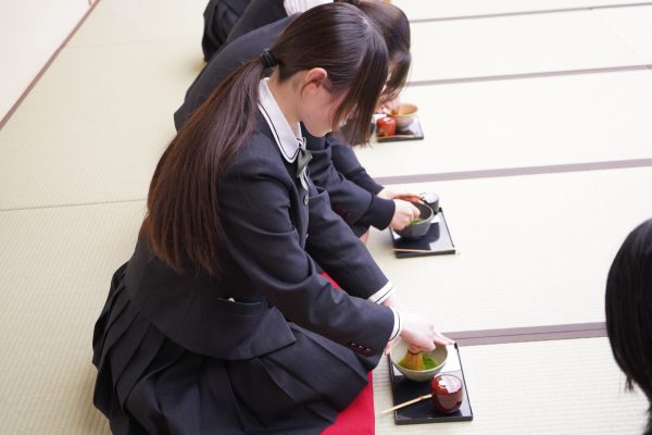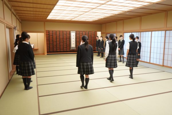 4月21日(月)より、中等部・高等部の全学年で立居振舞講座が行われています。この講座では講師の先生をお招きして、和室でのマナーや教養を身につけることを目的に、各学年が毎回異なる内容を学んでいます。
