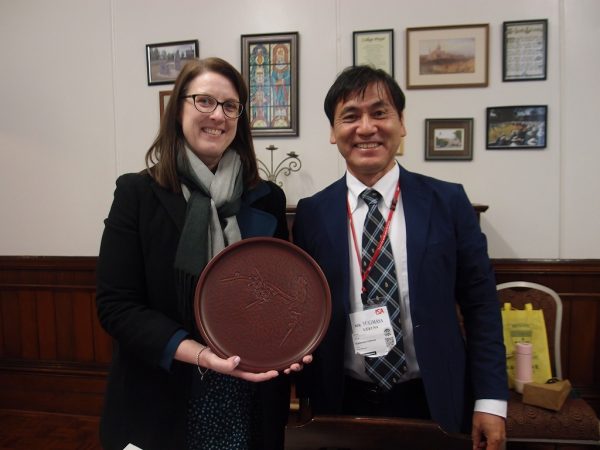 校長先生は今週出張中とのことで、教頭先生のMs. Melissa Deverが出迎えてくださいました。今後の交流についての話し合いの後、鎌倉彫のお盆を今年度の交流の記念にお渡ししたとろ、大変喜んでくださいました。