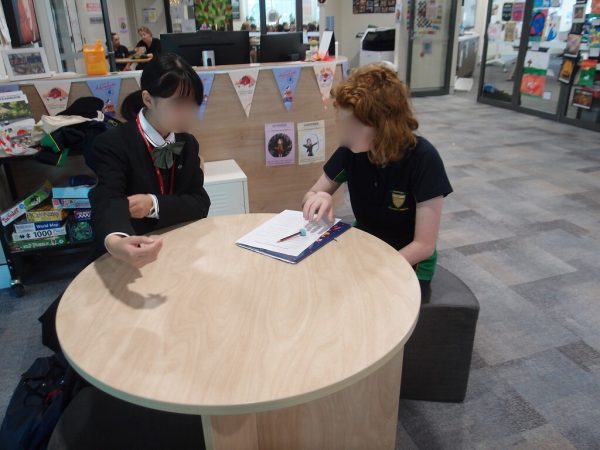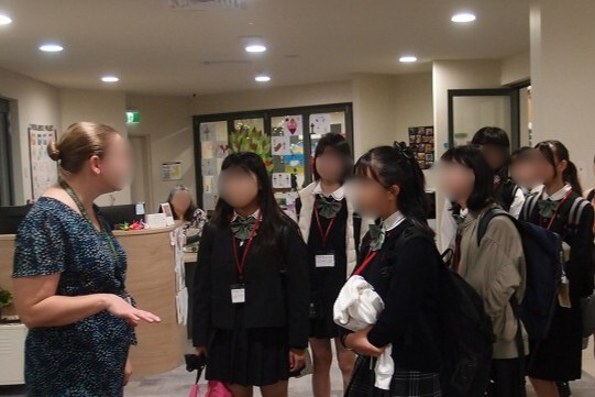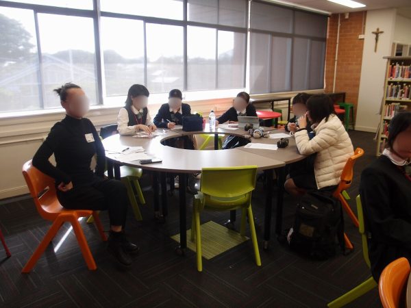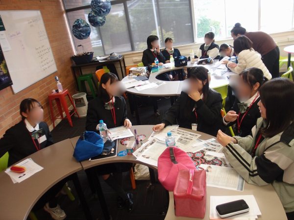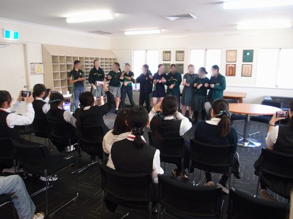 姉妹校にて、朝に校内案内ツアーとバディー生徒の紹介がありました。その後一緒に授業参加しました。