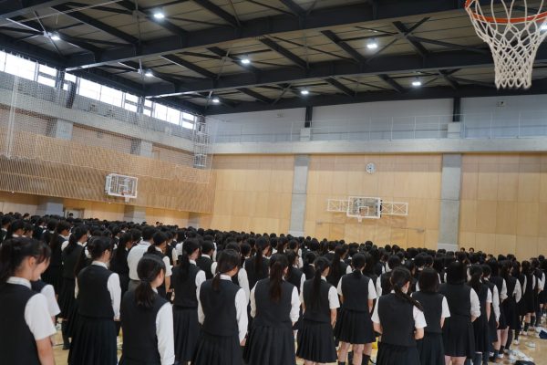 9月1日(月)、夏休みが終わり、2学期始業式が行われました。全校生徒が体育館に集まり、国歌と校歌の斉唱の他、部長先生による講話がありました。部長講話では、「すぐに始めることの大切さ」についてお話がありました。 また、表彰では水泳部や新体操部などの夏の大会の結果を称えました。今後の活躍も期待しています。 始業式の後は全学年が模擬試験を行いました。夏休みまでに学習した成果を出して取り組めていること期待しています。