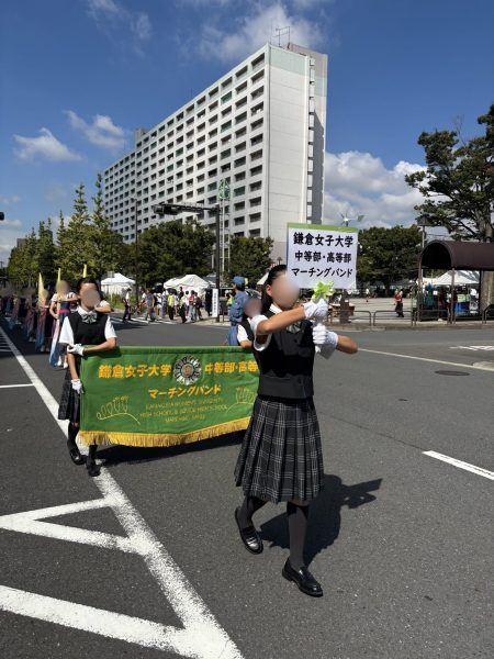 9月6日(土)、マーチングバンド部は本校最寄り駅の1つである本郷台駅前で行われた、「本郷台駅前まつり」に出演し、本郷台駅前周辺道路でのパレードと、駅前広場での演奏・演技を披露しました。 地元のお祭りは見ている人との距離が近く、様々な出店が立ち並び、活気ある雰囲気の中、多くの観客の方々からの拍手や声援をいただくことができました。演奏・演技という形で地域に貢献することができ、とても良い経験になりました。