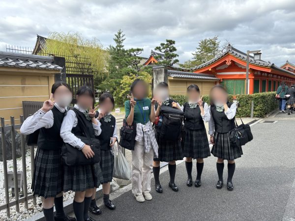10月19日(日)、修学旅行で京都に参りました。 1日目は京都で学んでいる留学生の方と班ごとに京都市内(三十三間堂、二条城など)を散策しました。風が心地良く、趣味、家族、京都の街のことなどを英語で語り合いながらの散歩にぴったりのお天気でした。